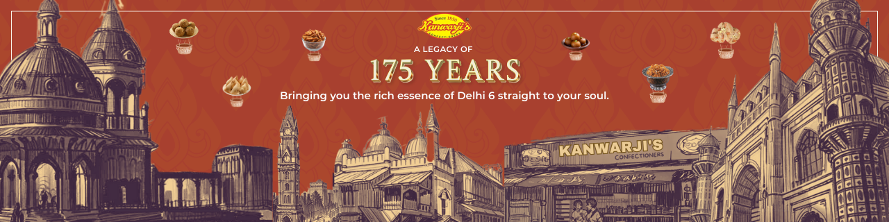 Kanwarji is here to bring you the authentic and scrumptious taste of Delhi 6. With a legacy of more than 175 years, we specialise in making namkeen that elevates your taste buds. We have a secret recipe for all our delicacies passed on from generation to generation. With a diverse menu range, it is safe to say that there is no one like us in the whole industry. We make sure that the food that you eat is not only good in taste but also made from healthy ingredients. Our major USP is our quality which we believe is unique and unparalleled. With years of relentless service to customers, we have successfully become a famous namkeen shop in Delhi. Our outlet is not only one of the oldest in Chandni Chowk but in the whole of Delhi. We are a brand in our own right which is why we have survived in the market all these years. We offer a variety of namkeen products on our website and assure you that you can buy namkeen online at the best prices in India.. Not only are we the leading players in the savoury industry, but also we produce high-quality sweets. Our products like Panjiri Laddoo, Sohan Halwa, Karachi Halwa, Pure Pista Lauj, and Gulab jamun are drool-worthy. We believe in long-term establishments with our customers, which is why we make sure that they come back repeatedly to buy our products. We make most of our products from pure Desi ghee, which is rare nowadays. Kanwarji’s chikkis are one of the best-selling products or crispy and thin, unlike others available in the market. They have a perfectly balanced flavour and are not excessively sweet. It is one of the reasons why cover ji has become one of the most famous sweet shops in Delhi. They taste like nothing else in the world, and you will surely be obsessed once you try our chikkis. Not only do our chikkis taste amazing, but they also look exotic.